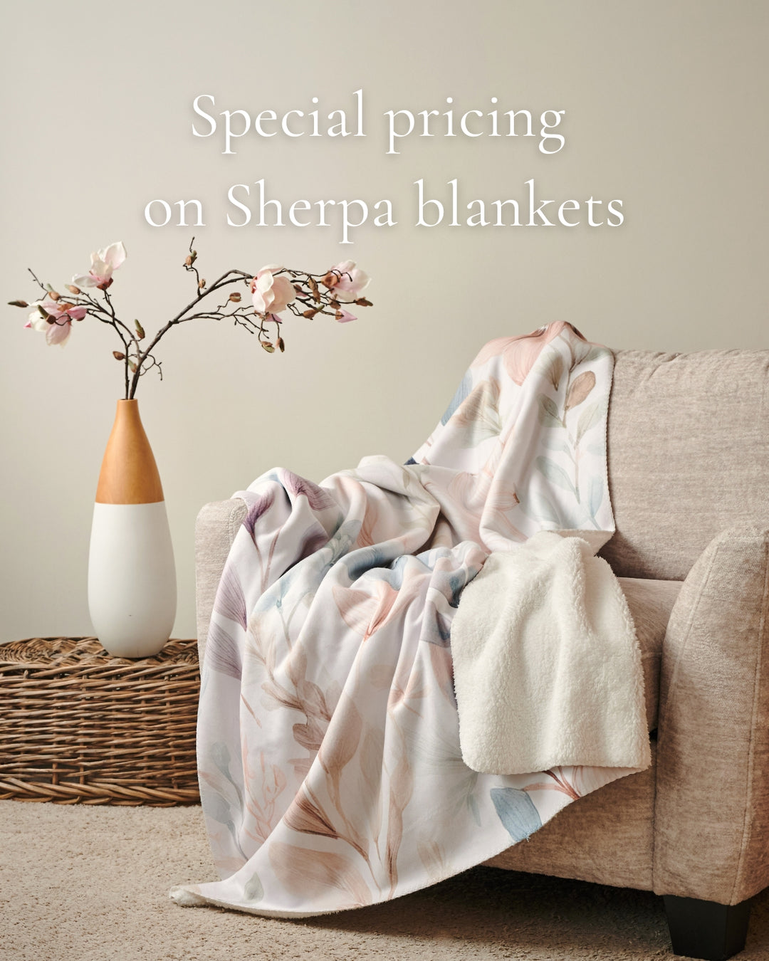 New floral Sherpa blankets — special pricing